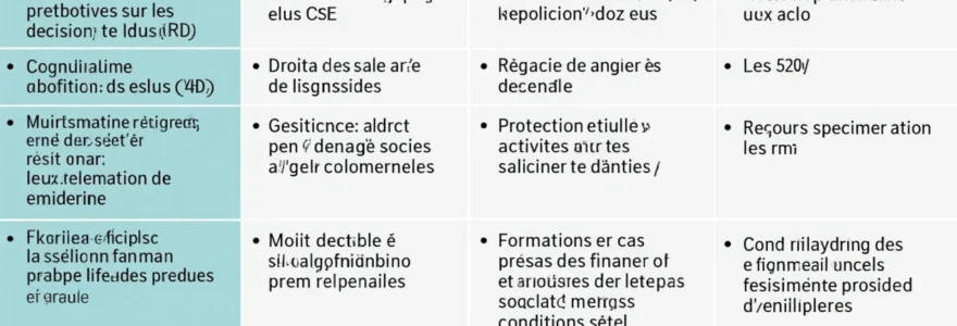 Les membres du CSE bénéficient d’une formation spécifique en matière de santé, sécurité et conditions de travail. Cette formation est obligatoire et renouvelable tous les quatre ans. Elle vise à doter les élus des compétences nécessaires pour exercer leurs missions de prévention des risques professionnels et d’amélioration des conditions de travail.